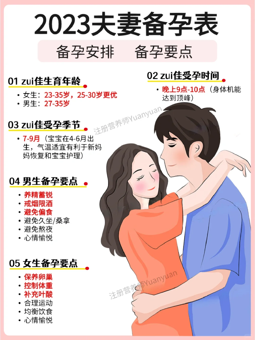 怀孕前你要先知道,备孕和怀孕是两个人的事情,不是一个人的努力就可以!你准备好要怀孕了吗?快来查收男女备孕指南吧✨~科学备孕,喜接兔宝宝/龙宝宝.🌟zui佳受孕时间:晚上9-10点🌟zui佳受孕季节:7-9月(宝宝在4-6月出生,气温适宜有利于新妈妈恢复和宝宝护理,而且季节性的传染bing少)🌟zui...[查看阅读]